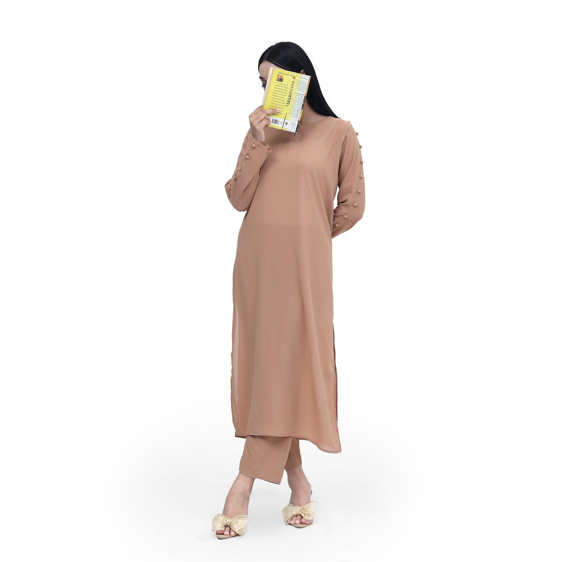 Signature lightweight crepe, perfect for the summers.